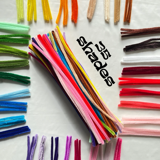 Discover the most beautiful range of craft pipe cleaners in India with our specially curated collection of premium pastel and basic colors. Unlike standard market options that only offer packs of 100 pieces, we provide flexible pack sizes of 50 pieces as well – perfect for hobbyists, DIY crafters, and small business owners who want variety without overstocking. These fuzzy wires, also known as chenille stems, are soft, kid-safe, and incredibly versatile.
